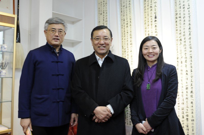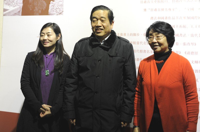 中国书法家协会副主席赵长青,中共甘肃省委常委、宣传部部长连辑,左文辉合影(左至右)