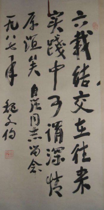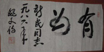 魏文伯同志既是卓越的革命家、教育家,也是才华横溢的文人。他早年入读武昌中华大学附属中学,1929年考入北平郁文大学政治科,自幼酷好书法,遍临《九成宫醴泉铭》《化度寺塔铭》《张玄墓志》《祭侄稿》《争座位帖》及米芾等人墨迹,所作小楷质朴遒丽,一笔不苟,行草非唐非宋,亦唐亦宋,多以欧、颜与米芾铸合融化,喜作擘窠大字,结体雄秀呈雍穆端庄之姿。作品多次入选国内外重大书法展览及在报刊发表,为多处博物馆、纪念馆、风景名胜区收藏或被勒石。出版《魏文伯书法选》。著有《魏文伯诗抄》、《魏文伯诗抄续编》。曾任中国书法家协会第一、二届名誉理事。