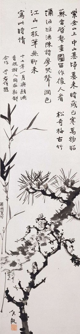 1929年,何香凝赴欧之前,绘制了白马湖“长松山房”的山水,留作友人志念。经亨颐则以长跋叙事,以之期望,“待到红树青山还来新居长松山房之约”。