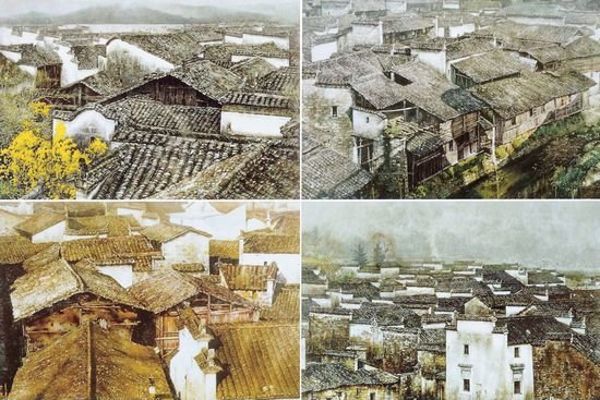 皖南的一个小县城里,一片白墙灰瓦的古旧建筑群。场景沉郁,墙角数枝鹅黄难掩大片屋顶的晦冷。对着这样一片屋顶,杨东风默然注视了3个月。究竟是什么打动了他?他说:“相看两不厌,这就是我和这片屋顶之间关系的写照。我能读懂它,它也能读懂我,这是生命与生命之间的交流。”从这片屋顶,杨东风看到了中国历史文化的沉积,看到了历经沧桑后传统审美情趣的自我坚守,读出了穿行在时空中的艺术生命原动力所在。这片打动作者的屋顶,最终也打动了全国的美术权威,他的这幅名为《古黟印象》的画作顺利入选全国美展,他本人也被推举进入新时期全国水彩画、水粉画前30人。