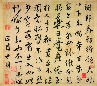蔡襄《谢郎帖》(书法) 宋 台北故宫博物院藏