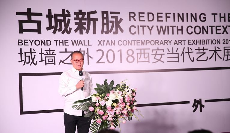 本次展览学术主持彭德先生讲话表示2018西安当代艺术展,加入了国际因素。以开放的心态,直面艺术的变迁,投身当代艺术,让展览走进当代城市生活,让城市文化长足发展。