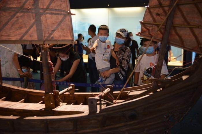 8月8日,小朋友参观“大海道--‘南海Ⅰ号’沉船与南宋海贸”展览。 刘文华 摄