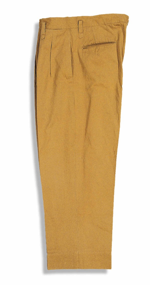 “任弼时进京前所穿的中山装”是中共中央进驻北京前,为大家做的一套浅黄色的卡其布中山装。展厅内这套衣裤就是任弼时当年所穿的中山装。开国大典时,他是唯一的一位没有登上天安门城楼的书记,由于当时病情恶化,他躺在医院病床上抱着收音机收听了开国大典的直播。1950年病故,终年46岁。