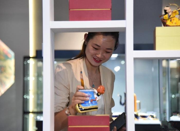 同时,展厅现场还设置了开放式直播间,精选参展作品,邀请非遗商户和文创企业负责人共同推介产品宣传文化。并组织网红人员,开展“网红带您来看展”活动,以年轻人喜爱的直播方式观赏展览,线上线下互动更添趣味。