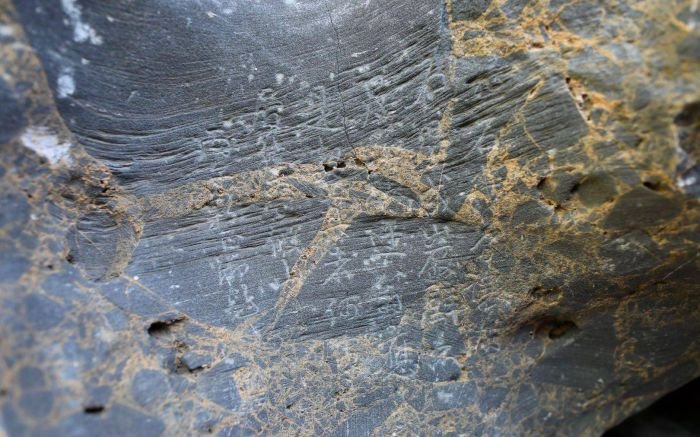 太湖石上刻有乾隆皇帝题写的诗句。摄影 浦峰
