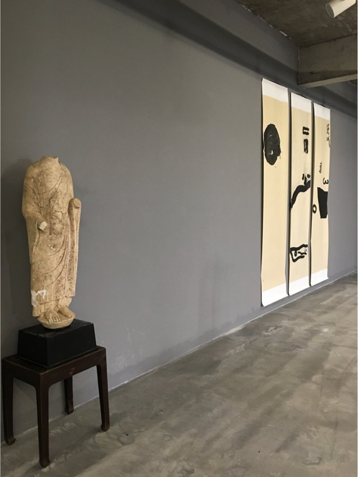 之后是本次展览策展人裴满意先生发言,他认为书写艺术是为探索具有东方自我文化根性、哲学思想与精神高度的当下艺术而给出的文化构想。书写艺术是在“写”的基础上发展起来的综合性视觉艺术与空间艺术。该系列展每两年一届,已持续五个年头。梳理前两届书写艺术探索展,其在“拓古”与“接今”两个大的层面取得了不俗的成绩,在拓古层面,将书写延展到了甲骨文之前的陶文、符号、纹样、图形、岩画等新的维度;在接今层面,将民间艺术、高僧遗迹、街头涂鸦、涂抹、盲写、少数民族文字、域外文字、神秘主义、佛道摩崖碑刻、出土墓志铭、壁画、手抄本医书、民间灶画等进行了当下性的转化,可谓极大了解放了传统书写的本体,也拓展了现代书法、流行书风之后的书写形态。