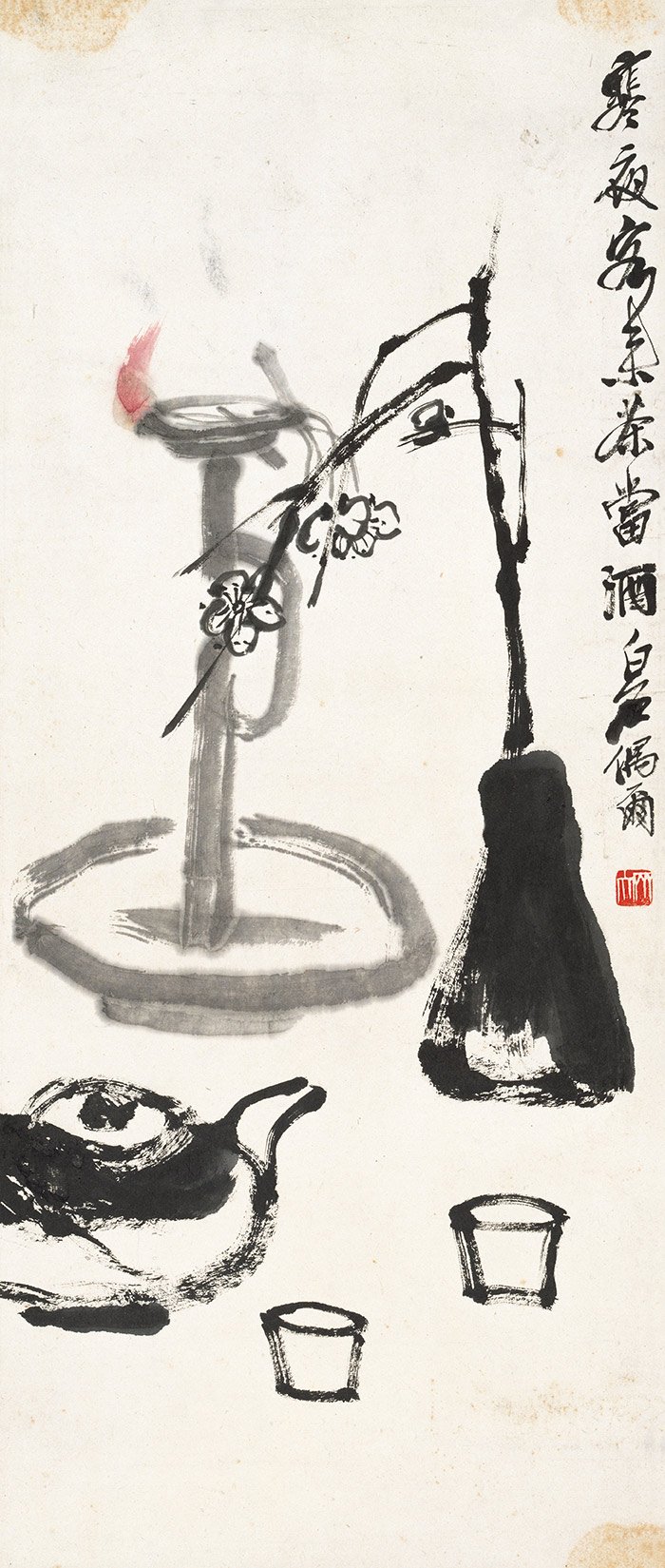 齐白石出身农民,他的画中有中国民间天然自成的趣味,有宗教神话世俗化或者说个人化的表达;齐白石又是一介文人,他的笔下有中国士大夫修身立德的风骨,有词人墨客吟咏诵唱的诗意。这些,都使得白石之作超越了物象之美而具充盈着诗意、道义和人情味。当我们吟一首“寒夜客来茶当酒”,乍冷的初雪,温暖的烛光,烫一壶清水,折一枝梅花,茶杯两盏,人影一双,唯好茶、老友、梅香,让今夜不同于往常。画中有诗意,诗中有画境,这正是中国绘画无尽的妙处。