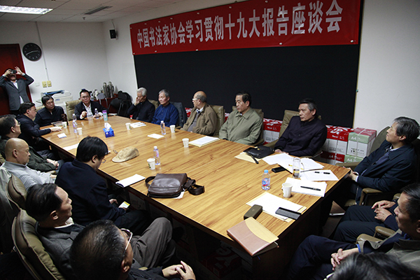 10月25日下午,中国书法家协会分党组组织京内外专家学者参加座谈会,认真学习十九大报告,贯彻落实十九大会议重要精神。[