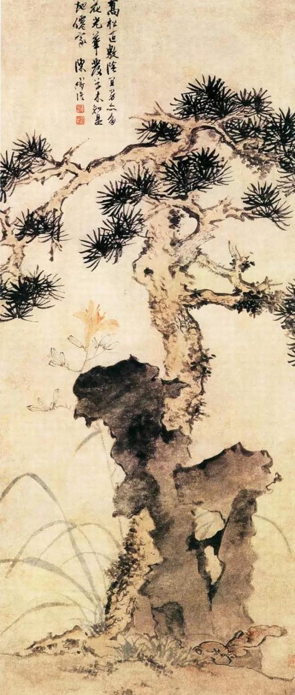 松石萱花图 明 陈淳(1438-1544)