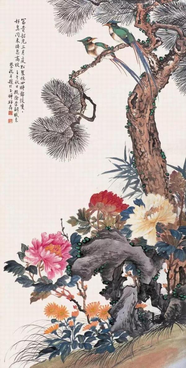 素花松石图 陈半丁(1876-1970)