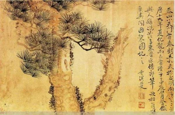 在中国传统“文人画”中,松、竹、梅被称为“岁寒三友”,取松、竹、梅都可傲凌风雪,不畏霜寒之性,表现卓越的人格品质和气节。松树早在唐代吴道子时就常被画在壁障上,后世多在山水画中运用,也有单独画松成幅者。