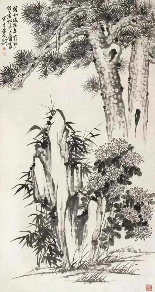 松竹菊石图 陈半丁(1876-1970)