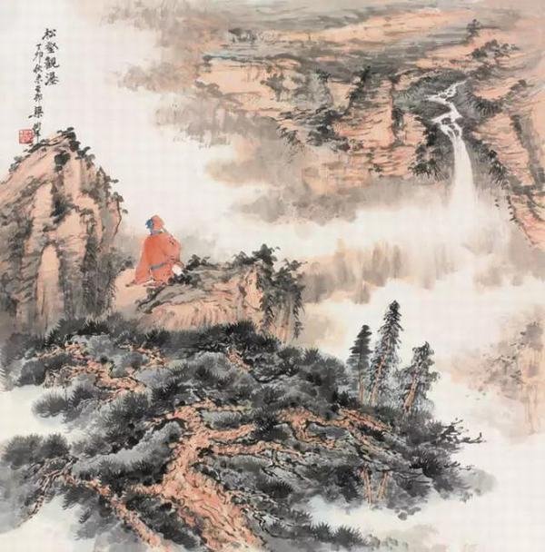 松壑观瀑 梁树年(1911-2005)