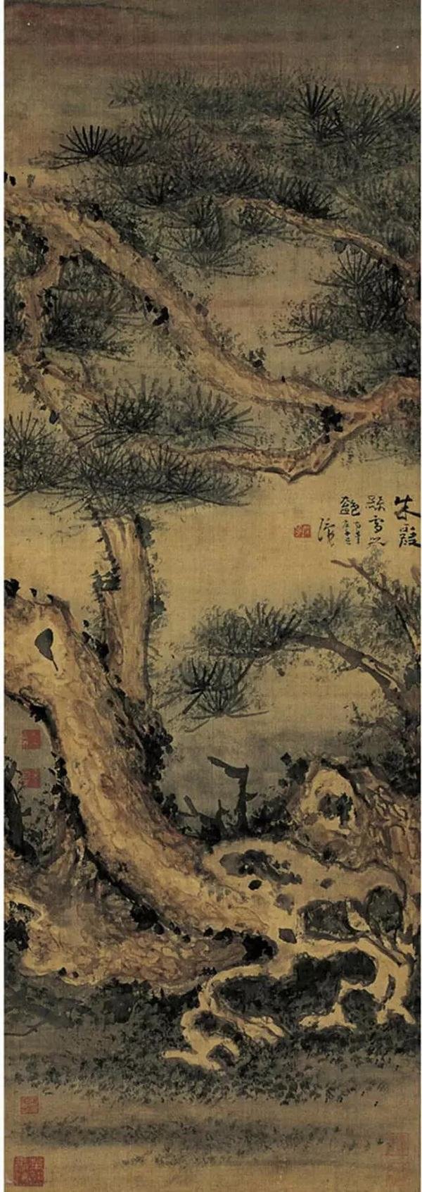 研读历代名家画松作品我们可以看到,从五代后梁的荆浩,到北宋的李成、郭熙,宋代的李唐、马远,元代的王蒙,清代的弘仁、石涛、梅清等等,不同的年代、不同的画家,由于审美情趣的不同,松的画法以及笔墨、构图呈现出各异的形态。