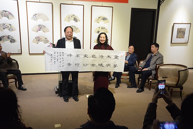李顺通向画家赵晓峰赠送书法作品