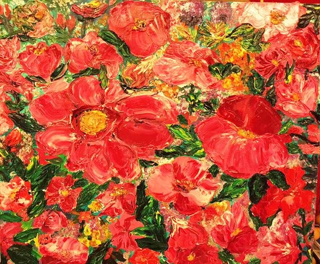 其实,郭天馨刚开始创作画画的时候,连马蒂斯是谁都不清楚。直到有一天,她给自己创作的百花园的作品去装裱,那家装璜公司的刘总说:这幅作品要很有功力才能画得出。她当时挺谦虚的说道:“这是我自己的画”。说者无心,听者有意,这时,旁边座着一位中年男子马上站了起来,说:“你的这幅作品跟法国著名的艺术家马蒂斯的作品风格很像,不仅色彩艳丽,而且具有野性。”原来,此人是这家装璜公司的董事长,原来李董也一直从事艺术培训,拥有一家大规模的艺术培训机构,他通知世界美术史。接着李董事长就用非常专业的眼光和艺术术语分析这幅百花园,他说:“这幅作品用了非常多的颜色,传统绘画的人不敢这么用色;这幅作品的构图也很有意思,百花齐放,争奇斗艳,极富生命力的作品.....”。那一天,应该是郭天馨专业从艺之路的起点。