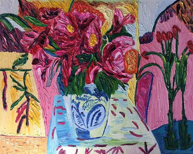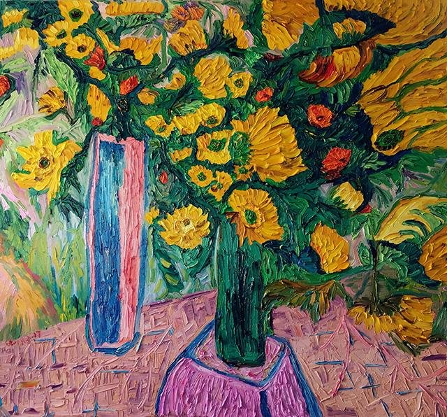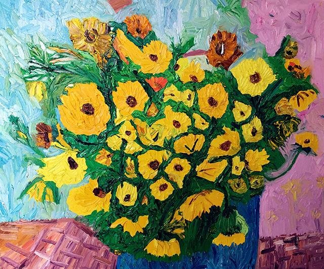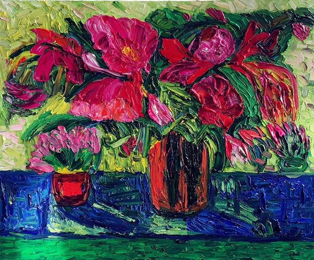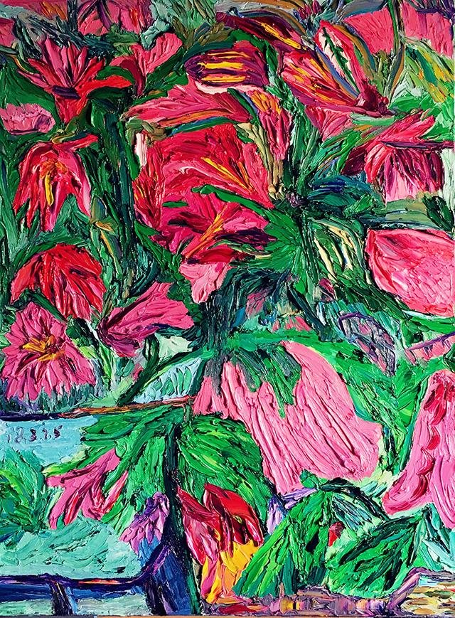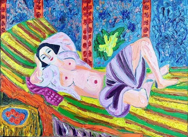 当你第一次欣赏到郭天馨的作品时,一定有一种感觉—“中国的马蒂斯”。郭天馨的画,无论色彩、构图、内容还是技法等方面,绝不走寻常路,她的笔法直接有力、着色大胆、色彩艳丽脱俗,画面布局更是打破常规。你一定能感觉,她的画犹如在法国著名的艺术家马蒂斯的基础上,增添了新的体验,不仅立体感丰富,而且达到印象派最高境界,可触摸,像雕塑,令人欣喜而惊叹!