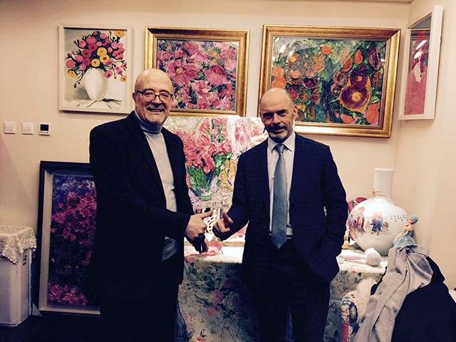 郭天馨与塔库尼.马洛先生(意大利著名的马赛克艺术家、鉴赏家、收藏家)合影
