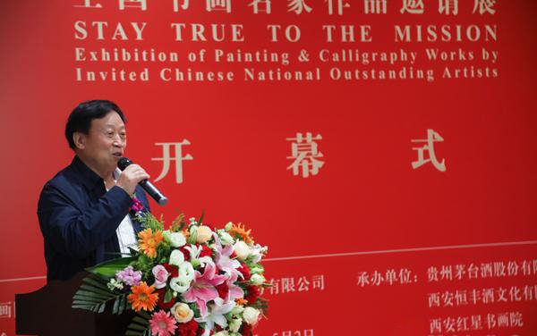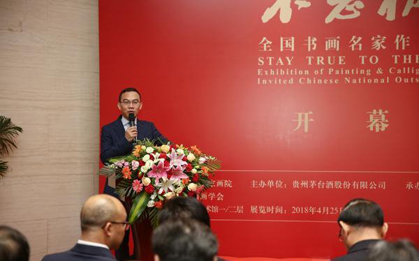 原兰州军区司令员李乾元上将,中国国家画院院长杨晓阳,中国贵州茅台酒厂(集团)有限责任公司党委书记、总经理李保芳,中国国家画院副院长、书法篆刻院执行院长曾来德,中国画学会创会理事、贵州中国画学会会长王振中,艺术家代表高卉民等嘉宾在开幕式上发言,开幕式由著名主持人郎永淳主持。
