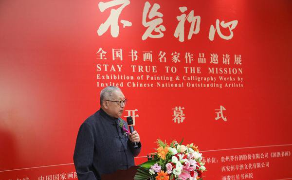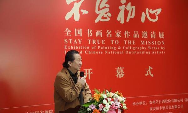 本次展览的主办方贵州茅台酒股份有限公司,是中国酒文化的殿堂级企业,茅台酒是中国名酒界当之无愧的艺术珍品,它既是造化钟灵毓秀的天然馈赠,又是千百年传统酿酒手艺的鬼斧神工,与参加此次展览的中国艺术大家交相辉映,共同缔造了这样一场有形有色,有滋有味,活色生香的艺术盛宴。“不忘初心——全国书画名家作品邀请展”征集了国画、书法两个专业150余名艺术家的300多件艺术精品,这些作品无疑代表着中国当代美术的最高创作水平。这既是一场中国当代书画艺术珍品的荟萃,也是一场民族美术事业发展成果的汇报,这就是选择在炎黄艺术馆举办本次展览的初心。